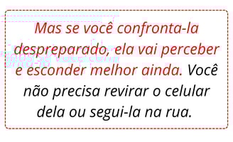 Mas se você confronta-la despreparado, ela vai perceber e esconder melhor ainda. Você não precisa revirar o celular dela ou segui-la na rua.